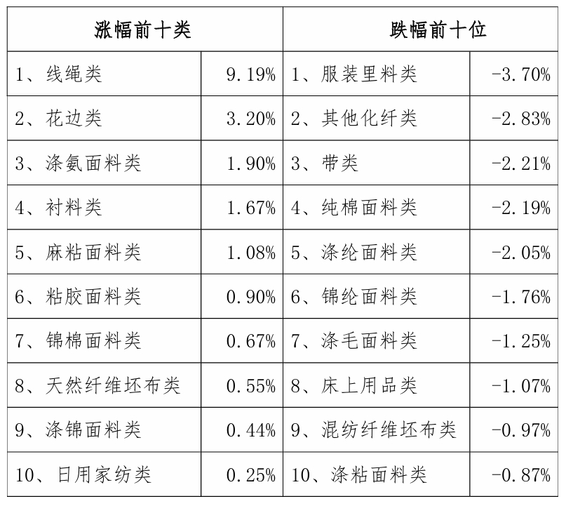 三、服裝面料明顯回縮,價格指數環比下跌