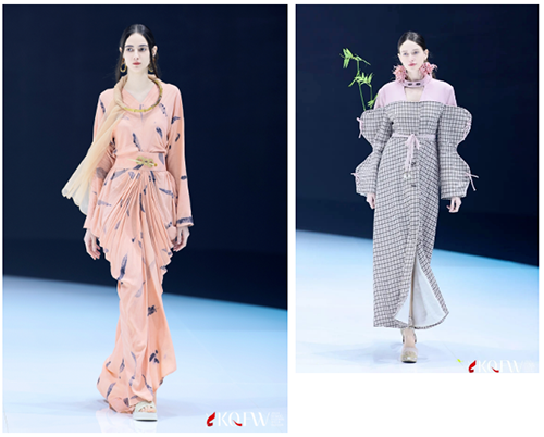 ![]() 2024柯橋時尚周(春季)啟幕秀暨2025春夏中國可持續時尚趨勢發布秀上,中國優秀服裝設計師/時尚造型師胡紅焱、中國十佳時裝設計師王紫菲,攜手金晟紡織、乾鑫紡織、東納紡織三家柯橋優秀紡織企業,聯袂呈現以竹文化為靈感之源,精選柯橋高品質竹纖維面料,將環保理念、時尚元素、國風雅韻與超現實美學有機結合,呈現了一場靈動鮮活、引人入勝的視覺盛宴。
