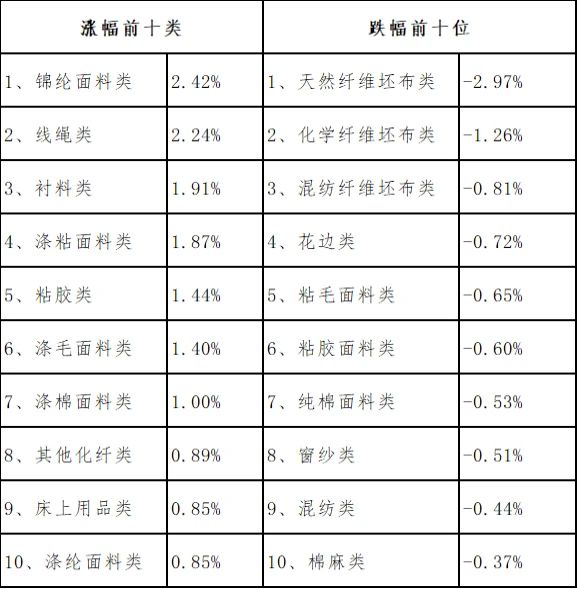 三、服裝面料環(huán)比回升,價(jià)格指數(shù)環(huán)比上漲