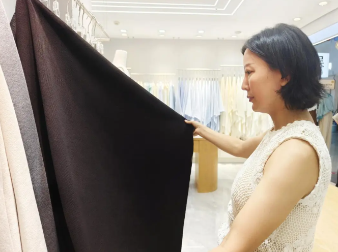 ![]() “我們的產(chǎn)品創(chuàng)新是把自己放在消費(fèi)者的角度去思考,如何讓消費(fèi)者花更少的費(fèi)用穿上更好的服裝。”據(jù)唐曉梅介紹,仁俁紡織有專業(yè)的研發(fā)設(shè)計(jì)團(tuán)隊(duì),從纖維、紗線原料開(kāi)始面料設(shè)計(jì),目前正在進(jìn)行2025年春夏新品面料的開(kāi)發(fā)。在材料運(yùn)用上,將更多加入竹纖維、麻、桑蠶絲等天然環(huán)保原料;在色彩上,將更多采用柔和治愈的自然之色;在風(fēng)格上,將體現(xiàn)AI元素的科技感和輕松自在的松弛感;在功能上,將加入抗菌、美膚、防曬等性能。