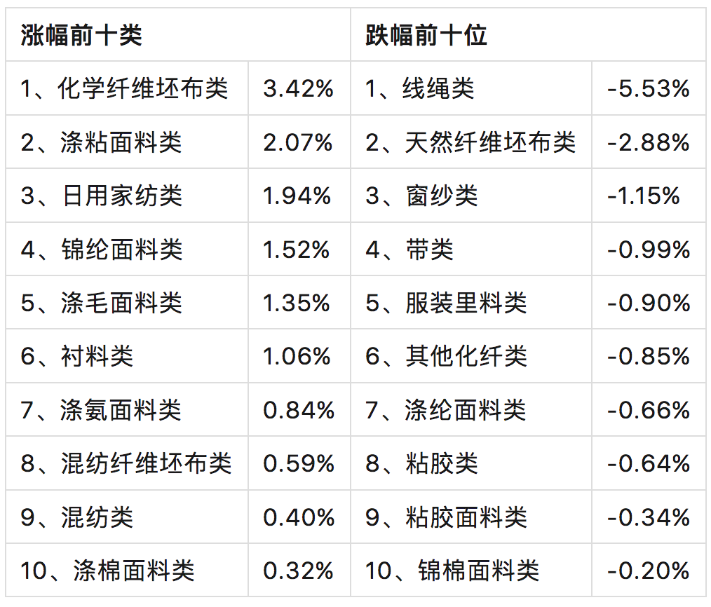 三、服裝面料環(huán)比回升,價格指數環(huán)比上漲