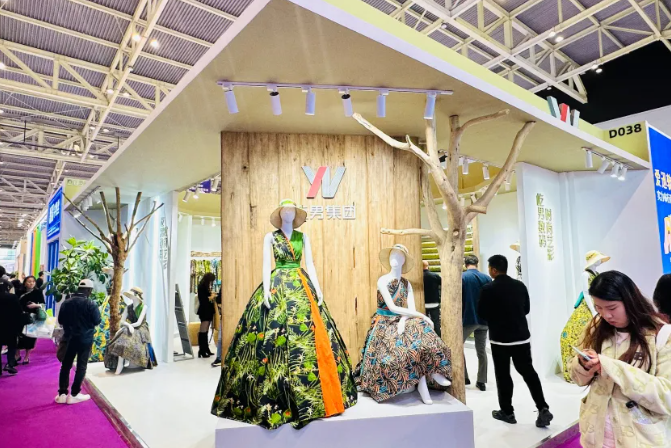 ![]() 屹男集團于本次展會中獨辟蹊徑,巧妙融合自然元素,仿佛將大自然的綺麗景致直接移植至展會現場。在溫潤原木的精妙映襯下,所展示的面料洋溢著濃郁的自然風情,令人耳目一新。集團精心籌備,推出了近千款數碼印花精品,產品色彩斑斕,絢麗奪目,細致劃分為精細花型、敏感花型及滿印花型等多個系列,滿足了市場的多元化需求。屹男集團副總經理田莎莉表示:“我們致力于成為大自然色彩的搬運工,不僅作為源頭工廠確保品質,更在研發與設計領域深耕細作。集團擁有一支專業的調色與配色團隊,匠心獨運,將自然界的絢爛色彩轉化為面料領域的藝術之作。”