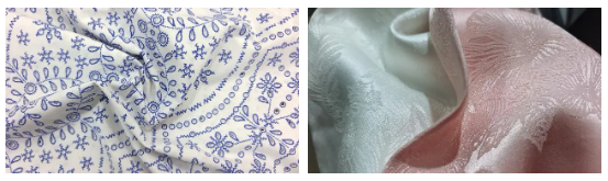 據介紹,帥莎紡織精心打造了運動戶外系列、國風系列和色織提花剪花系列,運動戶外系列主要通過面料克重、成分以及紋理進行巧妙搭配,并且增強了布料吸濕性能,展現出不同差異,以滿足各種戶外活動的需求;經典國風系列則從高層次原材料分類,采用人絲、真絲以及醋酸等提花面料,并施以雙面印花等后處理技術,增加層次感、豐富面料元素,賦予了紡織品獨特的文化韻味;色織提花剪花系列通過注重工藝的創新與細節的打磨,將色織、提花、剪花三合一,提升了產品的質感和視覺效果,使得每一件成品都具有獨特的藝術感和時尚感。帥莎紡織憑借著制作工藝、新型材料、后工藝三方面不斷更新迭代,贏得了市場的廣泛認可。