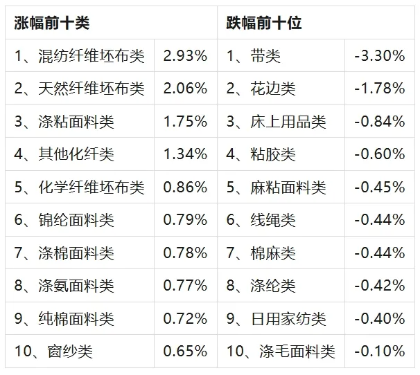 三、服裝面料環(huán)比推升,價(jià)格指數(shù)環(huán)比上漲