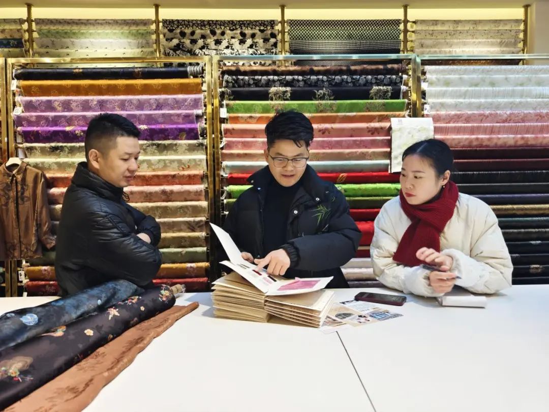 ![]() 無獨有偶,在東寶紡織業務經理吳學龍看來,內卷只是針對同質化產品,而良性競爭恰好會促進企業差異化布局和市場健康發展。走進東寶紡織展廳如同步入花團錦簇的面料海洋,古跡尋奇、竹葉清影、富貴芙蓉、翩翩起舞、春回大地……每款面料都蘊含著其獨特的設計理念。“我們公司以醋酸面料為主,人絲和真絲為輔,通過不斷嘗試將醋酸與人絲、真絲、羊毛等纖維進行混紡,賦予面料更多可能性,通過栩栩如生的印花、高端大氣的提花,將國潮文化展現得淋漓盡致,深受下游高端品牌客戶青睞。”吳學龍說道。