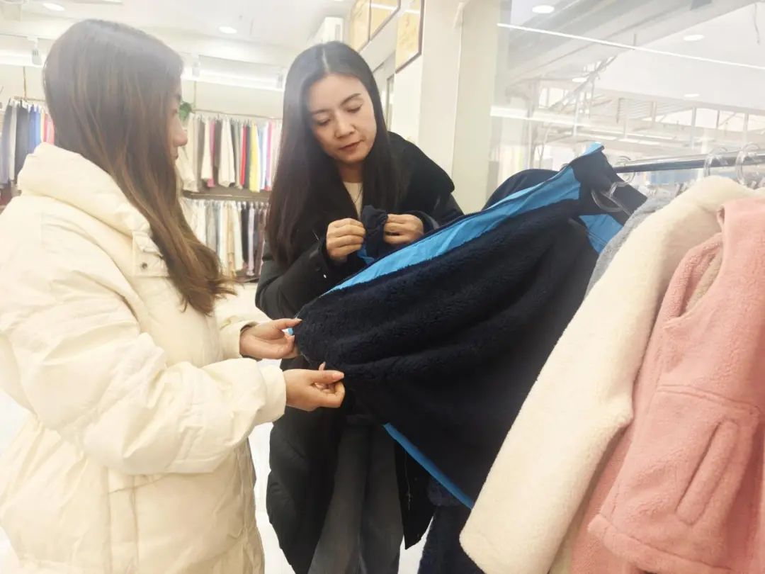 在高琴看來,物美價廉的產品,才符合大眾化的需求。“你看這兩款面料,同樣的顏色和成分,但是一款是單股線織造,一款是我們經過工藝改善的雙股線織造,后者不僅具有親膚柔軟的手感,還更顯高級感和挺括感,不僅可以用于里料,還能用于外套、圍巾等。放在一起對比,單股線織造的面料就稍微遜色一些,但價格相差并不大,所以很多客戶都會選擇雙股線織造的這款。”交流中,高琴拿出兩款同樣是安哥拉紅的北極絨面料向記者介紹道。