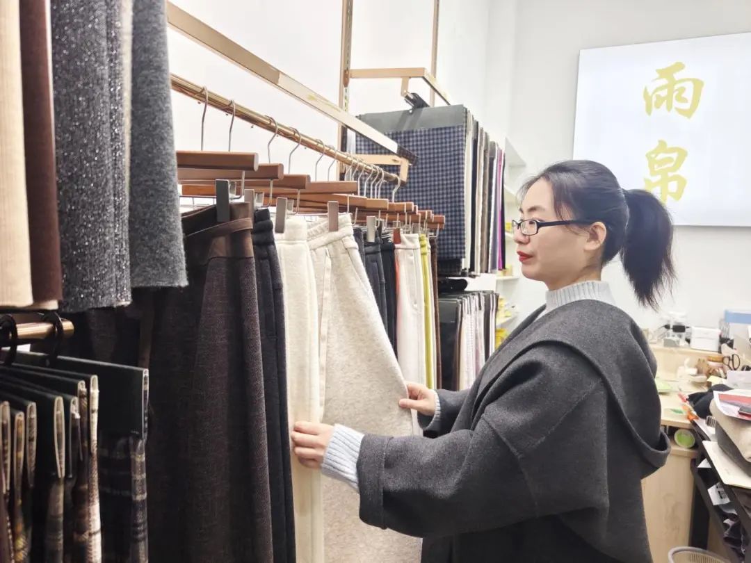 ![]() 在走訪中,記者了解到,以內需市場的細分領域為切入口,精準吸粉成為諸多柯橋紡企的發展策略。“我們以前經營上衣面料,然而柯橋做上衣料的企業太多,而且流行趨勢瞬息萬變,對于雨帛紡織這類小企業來說競爭壓力太大,于是從 2019 年轉型到更細分的秋冬褲料,不斷做精做專。目前,我們產品基本以羊毛混紡為主,通過嘗試羊毛與不同纖維的巧妙組合,不斷優化產品結構,積累了大量穩定的客戶群體。”萬佳佳說道。