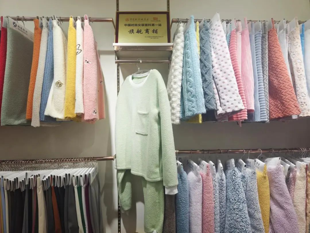 ![]() 位于中國輕紡城東市場三樓的昭瑞紡織是一家工貿一體的企業,主營北極絨、顆粒絨、羊駝絨、泰迪絨等針織絨布及各種復合面料,廣泛適用于里料、外套、圍巾、帽子、寵物窩等領域。“我們有自己的坯布工廠,60 余臺圓機生產的面料全部自產自銷,不用依賴外部供應商的生產能力,可根據市場需求靈活調整生產計劃,還方便企業內部進行產品技術創新和工藝改進,每個款式長期備有幾十個顏色的現貨,不僅能滿足客戶快反需求,還能做到極致性價比。” 公司總經理高琴說道。