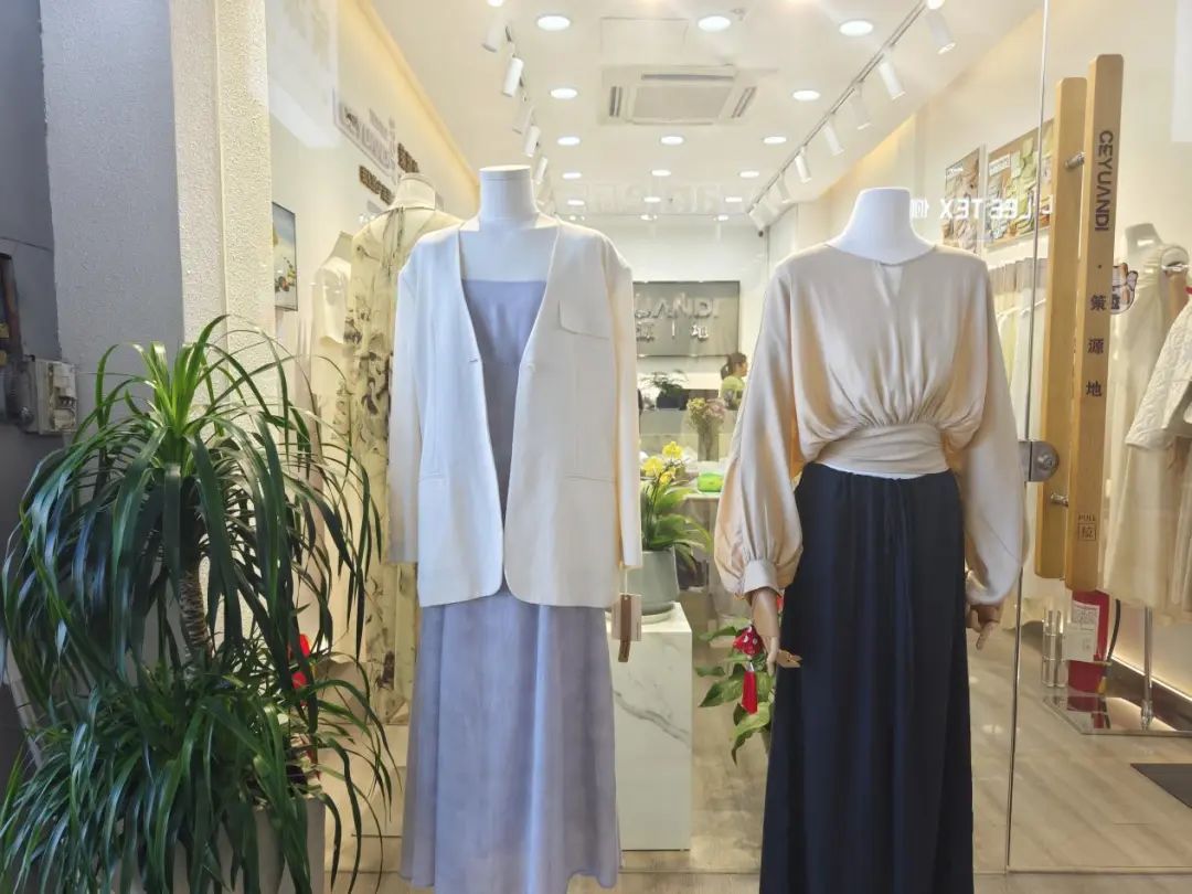 在這樣的創新理念驅動下,多年來仁俁紡織穩步發展,在時尚女裝面料領域擁有獨特的競爭優勢。據唐曉梅介紹,公司從纖維、紗線原料開始面料設計,2025 年春夏新品面料在材料運用上更多加入竹纖維、麻、桑蠶絲等天然環保原料,在風格上將體現AI元素的科技感和輕松自在的松弛感,在功能上加入抗菌、美膚、防曬等性能,目前許多下游客戶對綠色環保和高性能的產品表現出合作意向。
