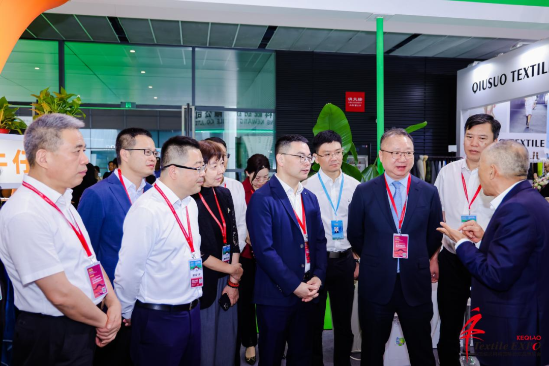 ![]() ![]() 展會首日,中國紡織工業聯合會會長孫瑞哲、副會長閻巖等行業協會領導,以及柯橋區領導袁建、景堯、吳海洋、丁貴、袁笑文等參觀展會現場。