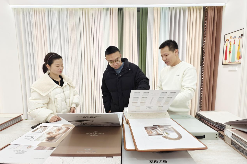 ![]() 走進思緯美居的門店,立體華麗的浮雕工藝、色彩濃郁的中古及意式風、手感柔和的親膚類產(chǎn)品、迎合寵物經(jīng)濟的防貓抓新品、極致性價比款等五大類窗簾新品整齊陳列,吸引了來自全國各地的二批商、零售商紛至沓來。“我們的產(chǎn)品都是自主研發(fā)的原創(chuàng)產(chǎn)品,幾個月前就開始籌備今年春季新品,過年期間也沒有停歇,為新年開市和春季展會做了充足準備,目前現(xiàn)貨至少可以支撐3個月的發(fā)貨。”公司總經(jīng)理胡靜說道。