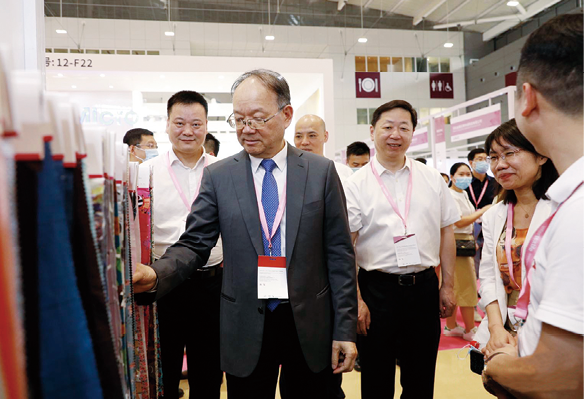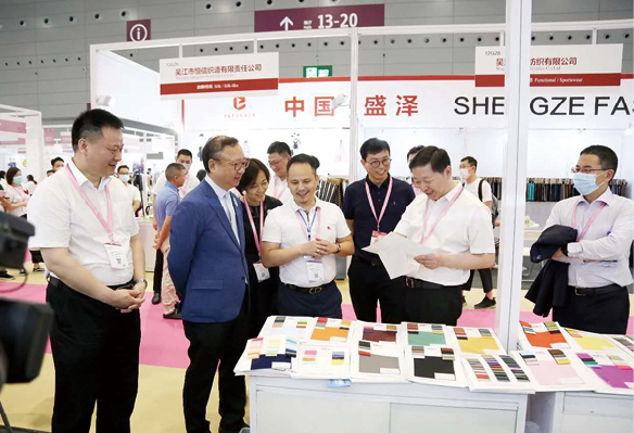 盛澤展團(tuán)面料奪人眼球,企業(yè)實(shí)力強(qiáng)勁 參加本屆大灣區(qū)紡博會(huì)的盛澤展團(tuán)包括盛虹、華佳、歐夢(mèng)尼亞、紫荊花、恒信織造、總總紡織、協(xié)和紡織、文暉紡織、凱靈紡織等眾多盛澤的優(yōu)秀企業(yè),其陣容強(qiáng)大、面料品類多、產(chǎn)品檔次高,諸多國(guó)內(nèi)外采購(gòu)商紛至沓來(lái),選購(gòu)理想的時(shí)尚面料。 在盛澤展團(tuán)專區(qū),全滌、尼龍、天絲、人絲、大提花、醋酸、全棉、環(huán)保再生纖維以及真絲等各類面料產(chǎn)品星羅棋布,集中展現(xiàn)了盛澤面料時(shí)尚性強(qiáng)、科技含量高的技術(shù)實(shí)力。參展的盛澤休閑面料不僅具有功能性、時(shí)尚性的傳統(tǒng)優(yōu)勢(shì),更在新材料運(yùn)用和技術(shù)創(chuàng)新上凸顯獨(dú)創(chuàng)之處,充分體現(xiàn)出盛澤面料企業(yè)對(duì)流行趨勢(shì)的超前引領(lǐng)意識(shí)。 展會(huì)首日,中國(guó)紡織工業(yè)聯(lián)合會(huì)黨委書記兼秘書長(zhǎng)高勇、會(huì)長(zhǎng)孫瑞哲、原會(huì)長(zhǎng)王天凱在吳江區(qū)委常委、吳江高新區(qū)黨工委書記、盛澤鎮(zhèn)黨委書記、中國(guó)東方絲綢市場(chǎng)黨工委書記王益冰,吳江高新區(qū)管委會(huì)副主任、盛澤鎮(zhèn)黨委副書記、中國(guó)東方絲綢市場(chǎng)管委會(huì)主任張建華等的陪同下先后調(diào)研了盛澤展團(tuán),并參觀了參展企業(yè),勉勵(lì)企業(yè)要做足功課、打響企業(yè)品牌。 據(jù)中國(guó)東方絲綢市場(chǎng)管理辦公室主任孫健華介紹,此次盛澤共有151家紡織面料企業(yè)赴深圳參展,展位面積1674平方米,無(wú)論是企業(yè)數(shù)量還是參展規(guī)模,都比去年有所擴(kuò)容。 為集中展示盛澤織造實(shí)力,打響盛澤紡織面料在全國(guó)乃至全世界的知名度,本屆盛澤展團(tuán)采用“統(tǒng)一規(guī)劃、抱團(tuán)發(fā)展”模式集體亮相,并在每個(gè)攤位上用顯著的標(biāo)識(shí)展示“絲綢古鎮(zhèn)”“紡織名城”“時(shí)尚之都”三張靚麗名片,進(jìn)一步展示盛澤面料品牌。