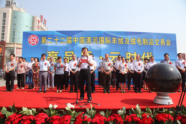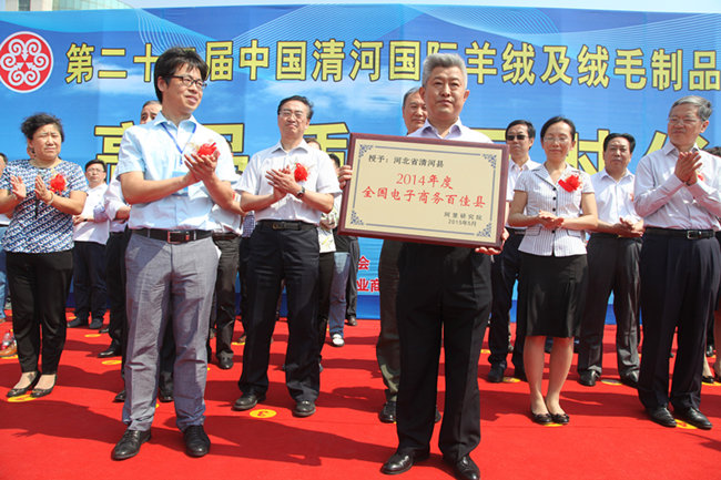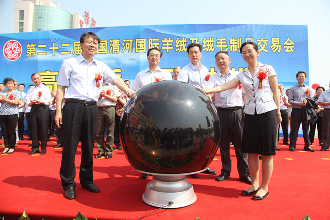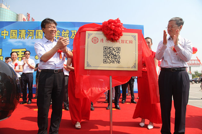 中國紡織工業(yè)聯(lián)合會副會長夏令敏和清河縣人民政府縣長李國印共同為“清河羊絨智匯購”商城啟動運(yùn)營揭牌
