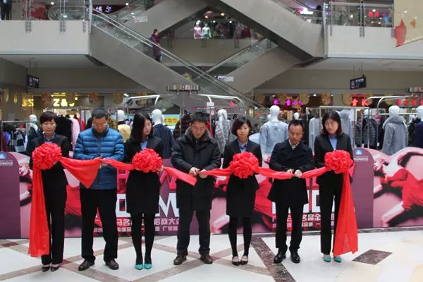 廣州白馬服裝市場有限公司市場營銷部經(jīng)理鄧寧(右二)、百榮商業(yè)管理有限公司常務(wù)副總裁、市場公司一期總經(jīng)理葛慶華(右四)、百榮投資控股集團有限公司商管公司商業(yè)發(fā)展部副部長倪明彥(左二)為活動剪彩。 11月25日,“白馬萬里行”北京百榮世貿(mào)商城品牌對接活動拉開帷幕。早上9點半鐘,百榮C區(qū)一層大廳中庭的白馬服飾展示區(qū)正式亮相,廣州白馬服裝市場精選的31個優(yōu)質(zhì)服裝品牌集約于此。簡約典雅的展區(qū)內(nèi),300余款時裝新品錯落有致地進行陳列,打造了一個小而美的精品時裝展示空間。