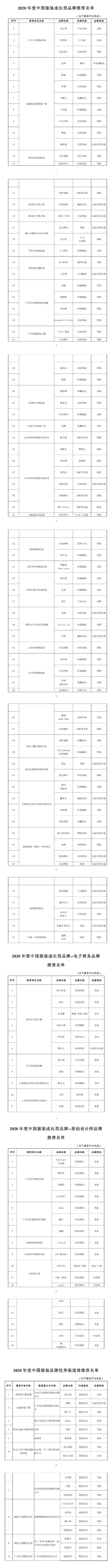 展望未來,中國紡織工業(yè)聯合會流通分會和中國服裝協會將始終以培育中國服裝品牌成長為工作方向,以持續(xù)推動中國服裝專業(yè)市場升級發(fā)展為己任,不斷助力中國自主服裝品牌快速成長,為行業(yè)發(fā)展涵養(yǎng)健康生態(tài)、培育新生力量,同時也助力產業(yè)服務平臺發(fā)展創(chuàng)新,推動產業(yè)進一步實現高質量發(fā)展。 論壇前期,與會有關領導和嘉賓代表還一同參加了常熟國際時裝周暨第二十一屆中國江蘇(常熟)服裝服飾博覽會開幕式。 2020年度中國服裝成長型品牌推薦名單