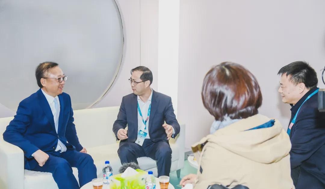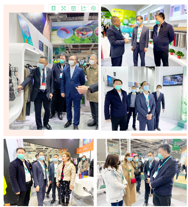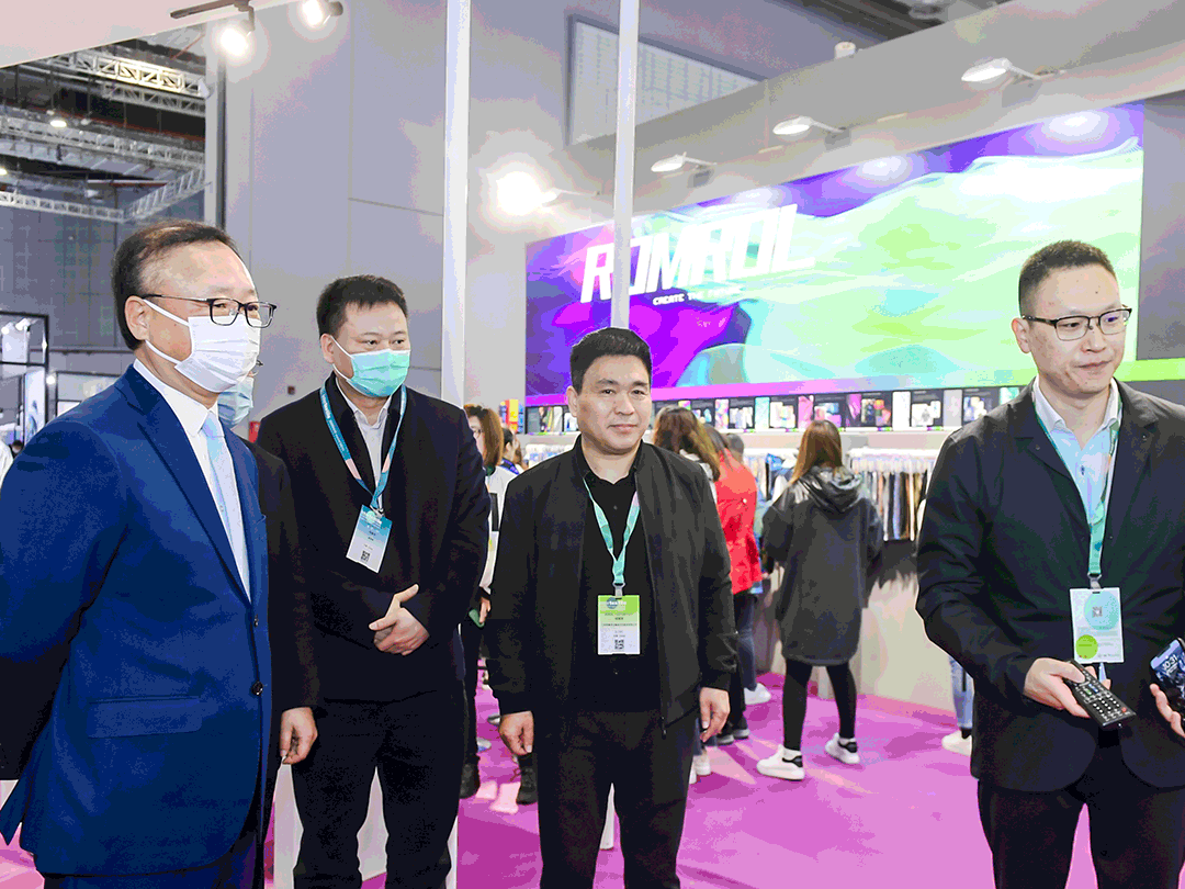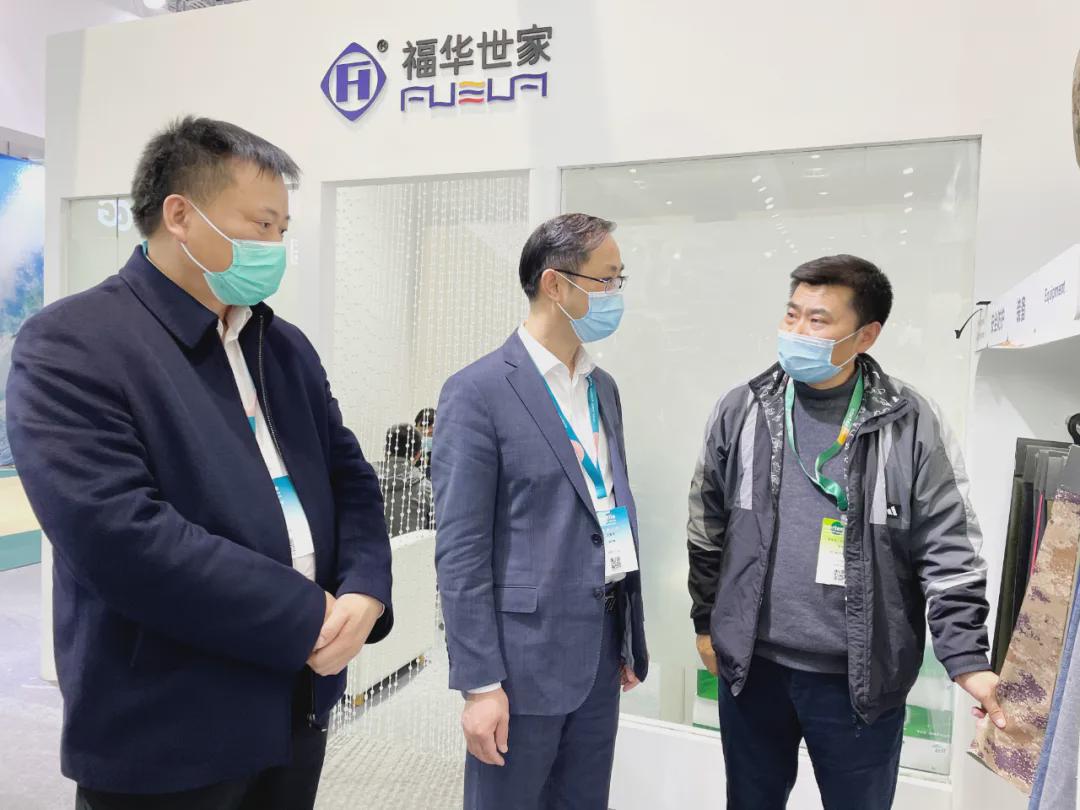 在展會上,中國紡織工業聯合會會長孫瑞哲會見了吳江區人民政府黨組成員、吳江高新區黨工委書記、盛澤鎮黨委書記沈春榮一行。雙方還分別現場巡館,與盛澤紡企、采購商交流。吳江高新區管委會副主任、盛澤鎮黨委副書記、 中國東方絲綢市場管委會主任張建華參加活動。