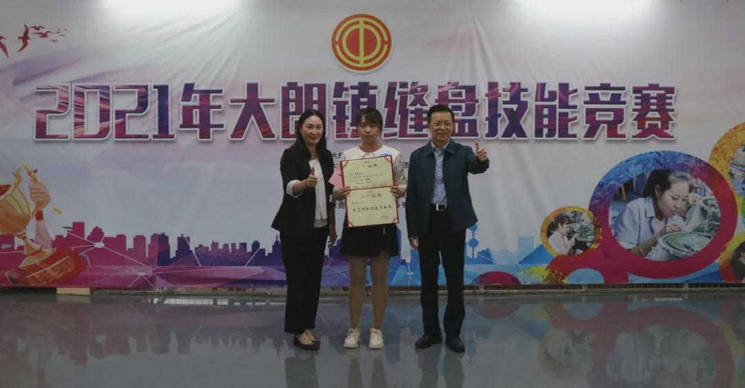 操作著每一道程序 東莞市總工會黨組成員、經審會主任陳偉鵬,大朗鎮人大主席、鎮總工會主席陳慧娟,東莞市總工會勞保部部長邱建國,大朗鎮黨委委員、鎮婦聯主席劉瑜,副鎮長曾悅以及鎮相關單位負責人現場觀看了比賽。本次技能競賽主要從速度和操作技能、完成質量等方面對選手進行考量。偌大的比賽車間內,選手們用嫻熟的動作進行著每一道工序,她們當中大部分人都是有著十年以上的縫盤經驗,有的甚至三十年。 ![]() ![]() 一等獎選手