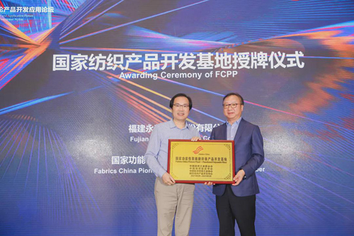 上舉行了國家紡織產(chǎn)品開發(fā)中心與福建永榮錦江股份有限公司的戰(zhàn)略合作簽約儀式以及國家紡織產(chǎn)品開發(fā)基地授牌儀式。
