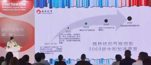 張艷紅發布企業“氣候創新30·60碳中和加速愿景” 啟動碳中和加速行動 魏橋紡織作為全球最大的棉紡織企業,積極響應國家2060年碳中和目標,鄭重宣布魏橋紡織的碳中和愿景,啟動魏橋紡織氣候創新碳中和加速行動,承擔社會責任,積極探索應對全球生態危機和氣候挑戰,發揮龍頭企業在全球產業鏈的能動性和影響力,以實現環境正益與紡織產業的可持續發展。