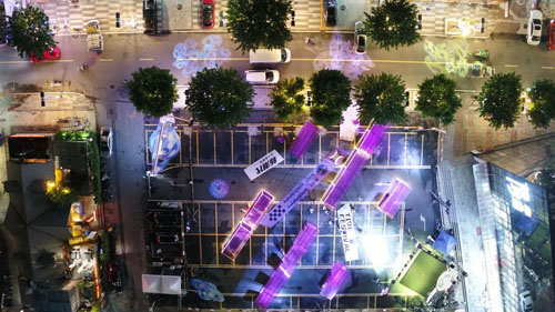 ![]() ![]() 現場樂隊DJ表演趕走盛夏悶熱,樹影燈飾在時尚大道兩側相映成趣,在巨型月球和時空隧道裝置拍照打卡的人們不斷涌入......