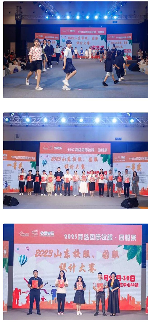 2023中國(青島)國際校服園服展聯合逸軒、紅動、三和紡織、金利鳥、國人、卡曼、立泰等品牌廠家攜最新設計作品展示。同期舉辦校服園服品牌時尚秀場,多家設計作品聯袂協作,上百款校服園服設計作品展示秀。