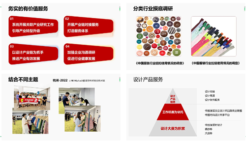 系統(tǒng)開(kāi)展關(guān)聯(lián)產(chǎn)業(yè)研究工作,引導(dǎo)產(chǎn)業(yè)轉(zhuǎn)型升級(jí)。2022年和2023年,分別對(duì)鈕扣行業(yè)和拉鏈行業(yè)進(jìn)行調(diào)查摸底,完成了《中國(guó)服裝行業(yè)鈕扣使用情況的調(diào)查》與《中國(guó)服裝行業(yè)拉鏈?zhǔn)褂们闆r調(diào)查》。開(kāi)展產(chǎn)業(yè)鏈對(duì)接服務(wù),打造服務(wù)體系。以LINKINGplus產(chǎn)業(yè)鏈協(xié)同創(chuàng)新平臺(tái)為落地載體,整合協(xié)會(huì)內(nèi)外資源,在產(chǎn)業(yè)集群與各地品牌等進(jìn)行對(duì)接,加強(qiáng)交流與市場(chǎng)合作。以設(shè)計(jì)產(chǎn)業(yè)鏈為抓手,推進(jìn)產(chǎn)業(yè)有效發(fā)展。依托中國(guó)服裝獨(dú)立設(shè)計(jì)師品牌商業(yè)聯(lián)盟、中國(guó)時(shí)尚設(shè)計(jì)共享平臺(tái)的工作機(jī)制,以設(shè)計(jì)對(duì)接、設(shè)計(jì)秀展、設(shè)計(jì)軟件服務(wù)等形式深入集群。加強(qiáng)企業(yè)溝通調(diào)研,促進(jìn)行業(yè)健康發(fā)展。從2021年開(kāi)始,專(zhuān)委會(huì)對(duì)相關(guān)的會(huì)員單位進(jìn)行了摸底調(diào)查,收集企業(yè)需求,提升關(guān)聯(lián)企業(yè)與中國(guó)服裝協(xié)會(huì)的合作粘度。
