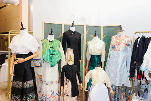 ![]() “年輕人喜歡‘新中式’服裝,熱愛的是‘服章之美’,也是傳統文化之韻。”海寧中國皮革城相關負責人說。為了讓各地客商更加真切的體驗“新中式”,在“國潮星勢力”展區除了各色國風面料,各類漢服、馬面裙成衣陳列其中,結合現場銷售營造沉浸式穿著體驗。