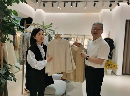 4月18日,中國紡織工業(yè)聯合會秘書長夏令敏、中國紡聯流通分會副會長兼秘書長王水元一行赴深圳考察調研,先后走訪了深圳華海達(國際)服裝交易中心,以及深圳豐瀅世紀廣場、金暉大廈等荔秀服飾文化街區(qū)內品牌。