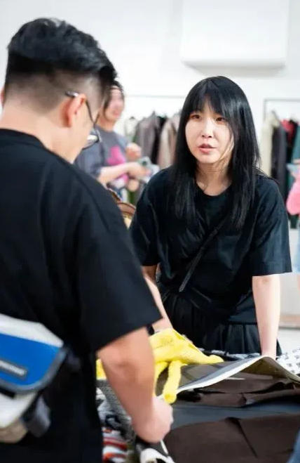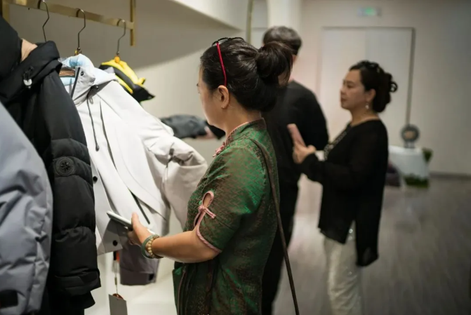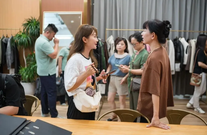 設計師、服裝企業代表及買手首先來到海寧市朗琦服飾有限公司參觀,參觀過程中,企業負責人向設計師及買手認真解答了創意設計、生產工藝等方面的問題,并互相交換了聯系方式,表達了合作意向。