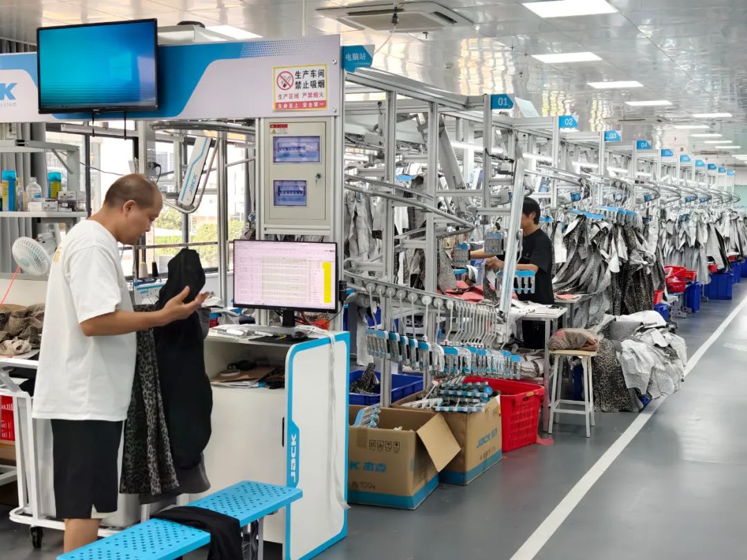走進(jìn)天門市永佳服飾公司的智能車間,懸掛式產(chǎn)線如同精密運(yùn)轉(zhuǎn)的神經(jīng)網(wǎng)絡(luò)。每個(gè)衣架都搭載物聯(lián)網(wǎng)芯片,實(shí)時(shí)向云端傳輸200余項(xiàng)生產(chǎn)參數(shù)。數(shù)字孿生系統(tǒng)在虛擬空間構(gòu)建著與實(shí)體產(chǎn)線完全同步的“鏡像工廠”,AI算法以每秒百萬次的計(jì)算速度,將紐約客的修身版型、曼谷買家的熱帶面料需求、迪拜商的奢飾工藝,拆解成9條產(chǎn)線的并行指令。“過去3天才能完成的生產(chǎn)周期,現(xiàn)在壓縮至4小時(shí)。”生產(chǎn)主管陳建波表示。這種“即需即造”的敏捷體系,讓天門服裝產(chǎn)業(yè)帶在2022-2024年間完成驚人蛻變。