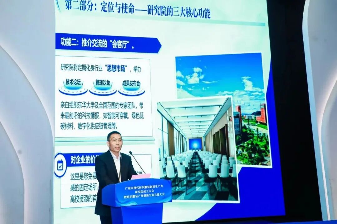![]() 廣州市現代紡織服裝新質生產力研究院院長、東華大學紡織學院教授吳德群表示:“研究院力求變‘漫灌式’科研為‘滴灌式’服務,讓研發直接對準企業的生產線和市場需求,降低企業獨立研發的風險與成本,加快創新速度”。
