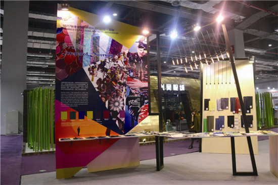 作為展會最為亮麗的一道風景,“中國紡織面料流行趨勢發布區”向來是吸引眼球最多、觀眾必去的區域。本屆展會分別以正裝、女裝、運動休閑、色彩為題設置了發布區,總面積達到684平米,依據“溫故納新、原生奢華、摩登禪意、多元競合”——2016/17秋冬面料流行趨勢四大主題,進行針對不同專業應用領域的趨勢發布。在面料精品展示中,設計大賽獲獎展商企業的產品以大賽獲獎標識予以鮮明地展現。此外,發布的產品首次提供二維碼信息查詢,大大提高了上下游及時對接的時效性。