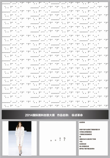 金獎(jiǎng)-標(biāo)點(diǎn)革命 獨(dú)特的元素、清爽的色調(diào),上海視覺藝術(shù)學(xué)院鄭童設(shè)計(jì)的作品《標(biāo)點(diǎn)革命》在創(chuàng)意大賽中勇獲金獎(jiǎng)。上海視覺藝術(shù)學(xué)院時(shí)尚學(xué)院纖維藝術(shù)設(shè)計(jì)專業(yè)的張嵐作為指導(dǎo)老師,可謂慧眼獨(dú)具、指導(dǎo)有方,她帶領(lǐng)參與大賽的團(tuán)隊(duì)共20人,其中10人獲獎(jiǎng)。 張嵐認(rèn)為作品要符合流行趨勢,要實(shí)用,要與市場應(yīng)用結(jié)合,不能單純的憑感覺設(shè)計(jì)。她在帶領(lǐng)團(tuán)隊(duì)開始準(zhǔn)備時(shí),花了很多時(shí)間來研究流行趨勢。最后,鄭童選擇了標(biāo)點(diǎn)符合進(jìn)行排列,雖看上去簡單,但效果很好。張嵐說:“鄭童的成功可能與我們前期的研究工作有很大關(guān)系,我們要求大家要做到設(shè)計(jì)面料時(shí)的基本要求和素質(zhì):色調(diào)要符合一個(gè)整體要協(xié)調(diào),局部有對比的規(guī)律。除基本水平外,重要的是把握流行趨勢,與時(shí)尚接軌。” 大賽的權(quán)威性與“含金量”吸引了學(xué)校的多年參與,學(xué)生的成績也獲得了大眾的認(rèn)可,帶給老師、學(xué)生很大的激勵(lì)。同時(shí),這也是驗(yàn)證成效與總結(jié)教學(xué)方法的良好平臺(tái)。通過大賽,張嵐感觸到,教學(xué)要注重“方法論”,方法不能太局限、太具體,而是要讓學(xué)生理解原理。 服裝面料設(shè)計(jì)人才需培養(yǎng) 廣州美術(shù)學(xué)院 楊頤 廣州美術(shù)學(xué)院工業(yè)設(shè)計(jì)學(xué)院家紡工作室專業(yè)老師楊頤,曾在法國學(xué)習(xí)服裝設(shè)計(jì)多年,回校后開創(chuàng)了面料創(chuàng)意課程,并著書出版。十幾年的教學(xué)讓楊頤積累了豐富的經(jīng)驗(yàn),指導(dǎo)的學(xué)生劉遠(yuǎn)圣的作品《意境》在大賽中喜獲銀獎(jiǎng)。 楊頤說:“大賽強(qiáng)調(diào)創(chuàng)意面料,與我的專業(yè)課程比較切題,為此我組織學(xué)生參賽。大賽在行業(yè)中非常有影響力,吸引了許多學(xué)生和人才的加入,加上公平公正的賽制,是我每年積極組織學(xué)生參加的重要原因。” 在教學(xué)中,楊頤對面料創(chuàng)意很少局限,非常注重設(shè)計(jì)與工藝的結(jié)合。每次學(xué)生拿出設(shè)計(jì)方案或想法,楊頤會(huì)對色彩、紋樣元素的搭配給出建議,并會(huì)問學(xué)生“你去怎樣實(shí)現(xiàn)”。 “專業(yè)學(xué)生必須理解面料開發(fā)工藝,能達(dá)到工藝要求的才能去做,為了創(chuàng)意而不考慮工藝的作品,需要想辦法實(shí)現(xiàn)。有一定的工藝設(shè)定之后,再去考慮表現(xiàn)技法和材料怎么結(jié)合。在審美和畫面等方面我也會(huì)對作品進(jìn)行細(xì)致的指導(dǎo)。”楊頤強(qiáng)調(diào) 設(shè)計(jì)要與時(shí)代同步 湖北美術(shù)學(xué)院 崔巖