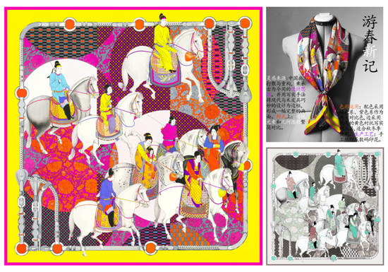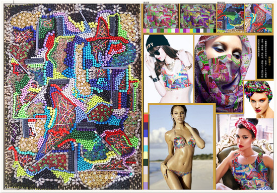 銅獎(jiǎng)-游春新記 作為銅獎(jiǎng)作品《游春新記》的創(chuàng)作者,南京藝術(shù)學(xué)院紡織品設(shè)計(jì)系講師王建介紹,該作品是一張絲巾設(shè)計(jì)稿,靈感來源于唐代名畫《虢國夫人游春圖》,作品結(jié)合現(xiàn)代元素和時(shí)尚色彩設(shè)計(jì)手繪而成。“關(guān)鍵主要在于如何用現(xiàn)代元素、時(shí)尚色彩來表達(dá)中國傳統(tǒng)文化,我感覺每一個(gè)中國設(shè)計(jì)師都有這份文化的自覺和自信,這也是我設(shè)計(jì)和指導(dǎo)學(xué)生的主要方向。” 據(jù)大賽評(píng)委反映,學(xué)生的設(shè)計(jì)在創(chuàng)意思維上表現(xiàn)不錯(cuò),但在與市場應(yīng)用相結(jié)合方面略顯薄弱。對此,王建強(qiáng)調(diào),培養(yǎng)設(shè)計(jì)師的市場應(yīng)用能力應(yīng)該是以企業(yè)為主,或者是企業(yè)與院校合作辦學(xué),目前我國藝術(shù)院校主要在進(jìn)行設(shè)計(jì)教育,培養(yǎng)創(chuàng)意思維,而不是設(shè)計(jì)培訓(xùn),如果說要提高設(shè)計(jì)作品的市場應(yīng)用性,企業(yè)辦學(xué)可能更有針對性。“對學(xué)生的培養(yǎng)我們還是以設(shè)計(jì)思維培養(yǎng)和設(shè)計(jì)方法的指導(dǎo)為主。學(xué)生是有千差萬別的個(gè)體,設(shè)計(jì)指導(dǎo)應(yīng)該培養(yǎng)設(shè)計(jì)思維的百花齊放,而不是為某一個(gè)具體方向具體的企業(yè)定制培養(yǎng),這樣學(xué)生才能成為具有一定設(shè)計(jì)思想的設(shè)計(jì)師。” 無限創(chuàng)意創(chuàng)特色“標(biāo)簽” 華南農(nóng)業(yè)大學(xué) 尹娜 華南農(nóng)業(yè)大學(xué)藝術(shù)學(xué)院服裝系家紡方向講師尹娜指導(dǎo)的學(xué)生朱紀(jì)衡以作品《拼湊》獲得了銅獎(jiǎng)。尹娜介紹,組織參賽的作品注重在創(chuàng)意上下功夫,此外從材料、制作工藝、表現(xiàn)手法等方面也有新穎的嘗試。塑形膏、海綿紙、牙簽成為不可或缺的材料,拼貼、紙上刺繡、扎染、蠟染也都成為了創(chuàng)意手法,創(chuàng)意織物的創(chuàng)作或裝飾材料的表現(xiàn)手法,都新穎引人,效果顯著。“作品繪畫一部分,創(chuàng)作一部分,既顯示功底,又體現(xiàn)了創(chuàng)意。” 對于參賽的作品,尹娜對學(xué)生提出要求,作品層次要多,色彩耐看,造型優(yōu)美,有更多材料運(yùn)用到作品中。此外,希望作品能達(dá)到既要讓人看不出“門道”,又能令人感慨“原來還可以這樣做”,展示出普通材料換一個(gè)角度和想法的創(chuàng)新運(yùn)用。“我們會(huì)在創(chuàng)意上不斷創(chuàng)新,既然堅(jiān)持了這條路,就會(huì)一直走下去。”尹娜說。 傳統(tǒng)文化走出“時(shí)尚風(fēng)” 魯迅美術(shù)學(xué)院 莊子平