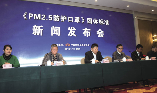1月18日,中國紡織品商業協會在北京發布《PM2.5防護口罩》團體標準,該標準是我國首個正式向社會發布的可以有效防護霧霾危害的口罩標準,將于2016年3月1日起正式施行。