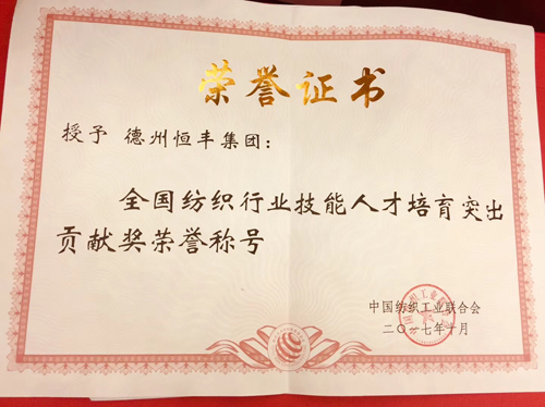 | 德州恒豐集團榮獲“紡織之光”全國紡織行業(yè)技能人才培育突出貢獻獎 |