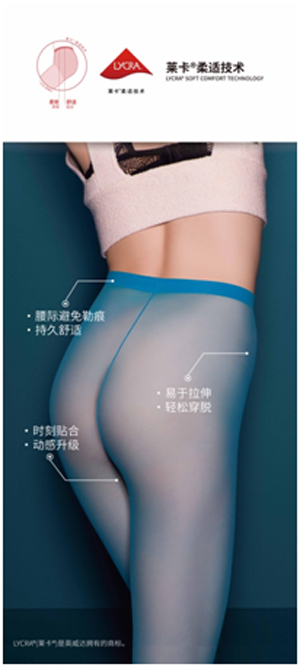 LYCRA? SOFT COMFORT(萊卡?柔適)為腰臀部位創造更舒適的穿著體驗 中國襪業現在最為欠缺的不是先進的制造能力,而應該是發展以消費者為核心的C2B模式去打破原來B2C模式形成的固化思維。準確把握消費者需求,獲取前沿的市場洞察,才能幫助國內襪品制造廠商及品牌商解除困局,從而破繭成蝶。打通供需之間的信息渠道,解決消費者的痛點,保證優異品質,中國襪品行業將會走出一條“質”造的進階之路,讓全球消費者穿上中國生產的高品質、高性能絲襪! |