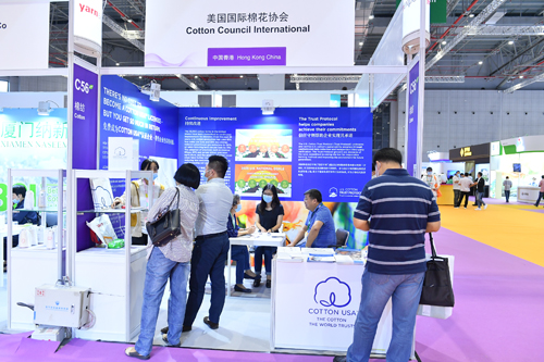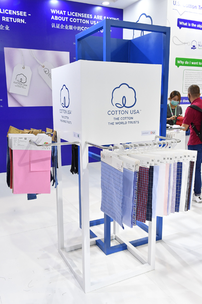 在COTTON USA?的展位上同時展示了美棉認證企業和品牌包括:江蘇春藍紡織(Chunlan Textiles), 康龍紡織(Cone Denim), 江門市大興針織(Daxing Knitters),興威紡織(H.W. Textiles), 宜興樂祺紡織集團(Lucky Textile), 青島捷瑞德紡織(Qingdao Jerid Textile)上海上怡貿易(SCHIESSER), 浙江盛泰服裝集團(Sunrise Textiles)的優質富含美國棉花的產品,同時使到訪者了解當前市場和消費者研究結果,以及與整個供應鏈中美國棉花買家和供應商相匹配的持續采購計劃。