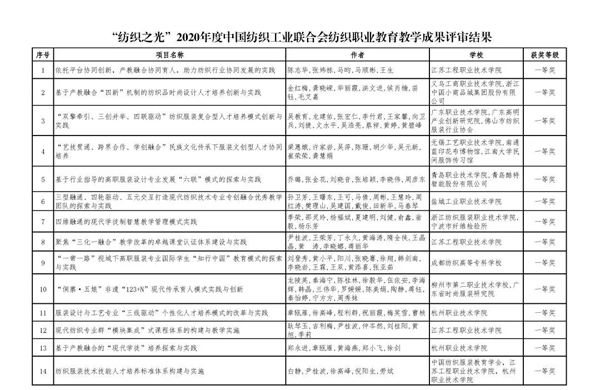| “紡織之光”2020年度中國紡聯(lián)紡織職業(yè)教育教學(xué)成果獎(jiǎng)出爐 |