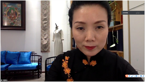 北京中南海紫光閣書畫院院士、中國書法家協會會員吳子書分享 沈陽盛京滿繡文化發展集團有限公司總經理、盛京滿繡非遺傳承人楊曉桐分享題為《非遺技藝傳承及產業化》的主題演講,楊總分享了刺繡與旗袍兩項非遺技藝,從滿族傳統文化入手,以旗袍為范例講解非遺文化的應用。非遺是指人類在歷史上創造,并以活態形式原汁原味傳承至今的,具有重要歷史價值、藝術價值、文化價值、科學價值與社會價值的表演藝術類、工藝技術類與節日儀式類傳統文化事項。滿繡是指確立國號大清、族號滿洲后的所有宮廷刺繡和民間刺繡,滿繡的刺繡紋樣來自于生活,通過形象創造滿足人們的生活需要和思想表達,龍紋圖案是其頗具代表性的紋樣。楊總指出滿繡的傳承要秉承四個方向:地域文化、傳承譜系、個人代表作、社會影響,并表明盛京滿繡會致力于推動滿繡在非遺產業化中創新,努力發揚光大滿繡的文化表現和技藝堅守。