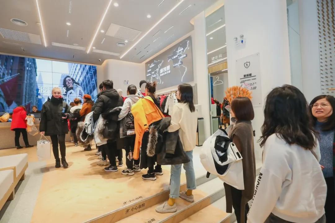 波司登線下門(mén)店,消費(fèi)者排隊(duì)選購(gòu)