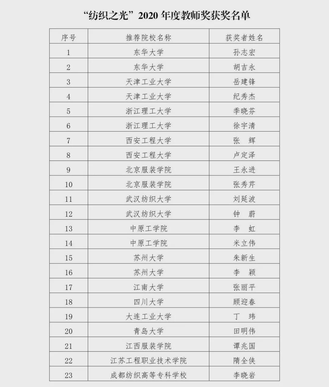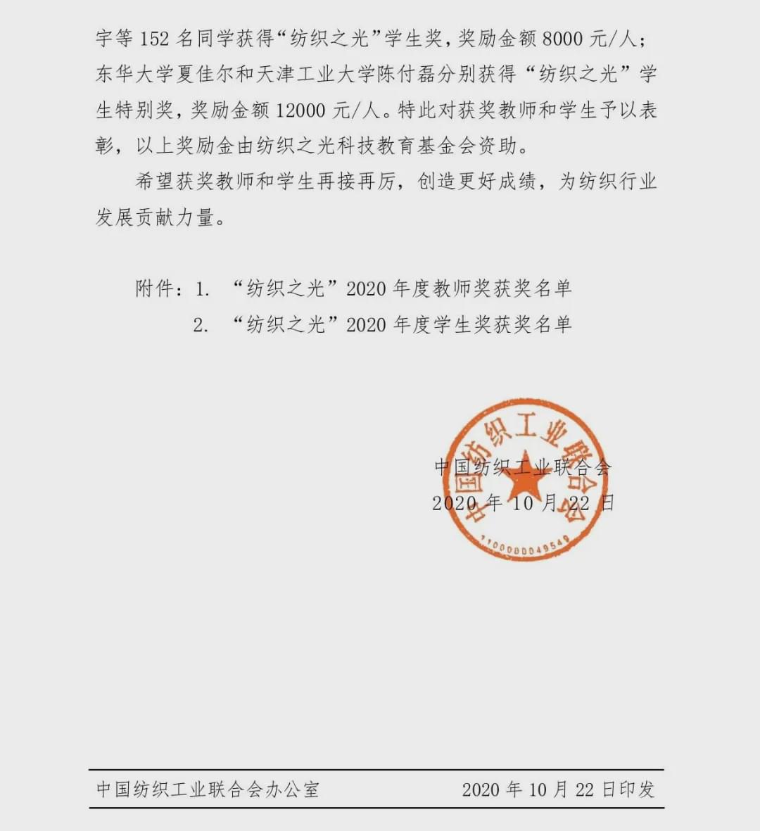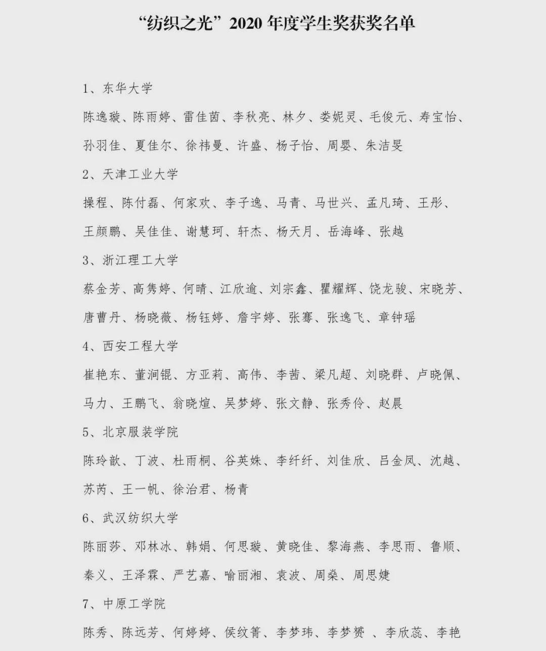 “紡織之光”2020 年度 中國紡織工業聯合會教師獎和學生獎