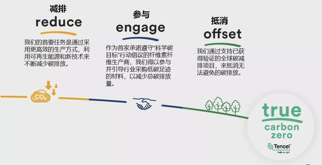 劉爽表示,時尚業的可持續發展并不僅僅是當前趨勢而已,氣候環境和消費者都需要更環保的解決方案。蘭精集團可持續戰略的根本目的是易于自然。作為首家獲批科學碳目標的木質纖維生產企業,蘭精通過制訂明確的目標和承諾,將脫碳列為關鍵優先事項。公司計劃以2017年為基準,到2030年將每噸產品的二氧化碳排放量降低一半。制定并簽署了《時尚業氣候行動憲章》,到2050年實現凈零排放的愿景。為此,天絲?品牌從“減排”、“參與”和“抵消”這三大方面著手,積極減少產品的碳足跡,與行業合作伙伴合作,以及抵消不可避免的碳排放。通過內外部減排措施,生產出經認證的CarbonNeutral?產品——零碳天絲?纖維。