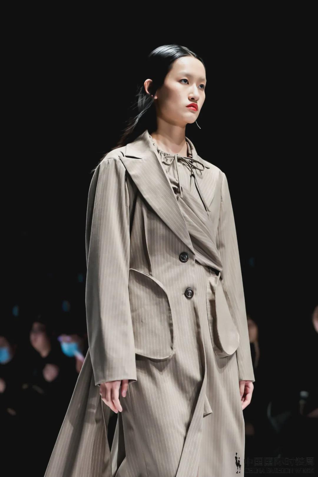 本季,設(shè)計(jì)師蘭天帶來的40余款女裝,盡顯復(fù)古風(fēng)格,設(shè)計(jì)制作行云流水地復(fù)刻了中國70年代的時代特性,自然流暢,細(xì)節(jié)處又隱藏多重與時代相吻合的“小心機(jī)”。一方面以男性化的格局,通過服飾展現(xiàn)了