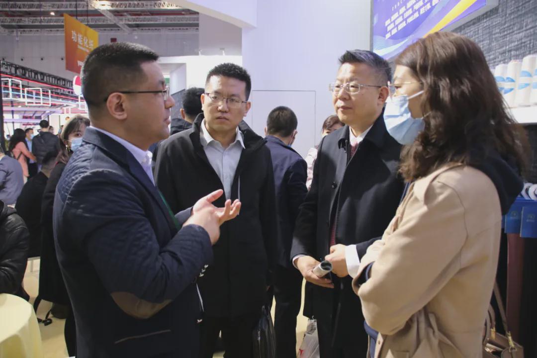 展會期間,東方國際(集團)有限公司高層領導到訪恒豐集團展位,參觀了集團功能性纖維系列、新特工藝紗線及織造產品系列產品。