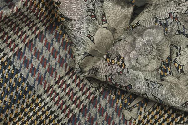 成分:粘膠32%,錦綸20%,滌綸18%,棉16%,羊毛14% 單位:浙江巴貝紡織有限公司 點評:變形威爾士親王格與大尺寸單色工筆花卉圖案拼接設計, 最佳科技創新大獎