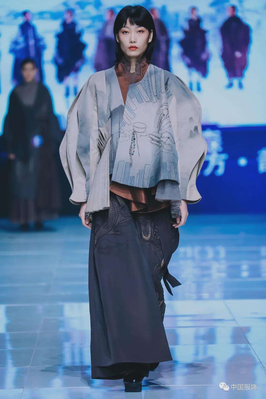 孫瑞哲就曾指出,服裝,作為文化認同、文化自信的一個顯性符號、一種良好載體,需要傳統文化、哲學精神、審美意趣在“說得清、立得住”的基礎上“看得見、摸得著”,這就需要將文化的抽象語言,進行有效地解碼、轉譯為生動的服飾設計語言,以文化立業,最終實現產業文化個性的落地與自立。 在這一點上,“大浪杯”無疑走在了前列。前十年的大賽以“@東方”為系列主題,傾聽時代聲音,先后推出“蛻變@東方”“追夢@東方”“新生態@東方”“潮系@東方”“同裳@東方”等與時俱進的賽制主題,既順應時代趨勢,又展現了當代新青年對東方文化的高度自信心與民族自豪感。