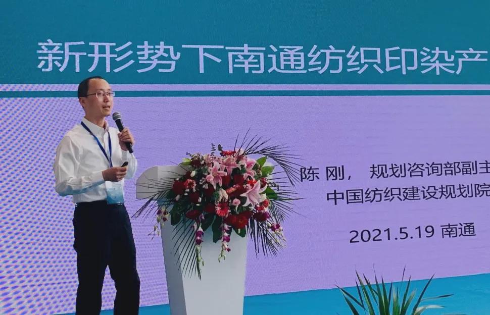 中國紡織建設規劃院規劃咨詢部副主任陳剛為大會作了“新形勢下南通紡織印染產業園綠色發展”專題演講,其在論述紡織行業綠色發展的概念和紡織行業發展面臨的形勢任務基礎上,重點介紹和講解了對南通紡織產業的定位、園區綠色發展路徑的研究成果。