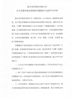 | 新鄉(xiāng)化纖股份有限公司發(fā)布“關(guān)于近期市場出現(xiàn)假冒白鷺氨綸產(chǎn)品的嚴(yán)正聲明” |