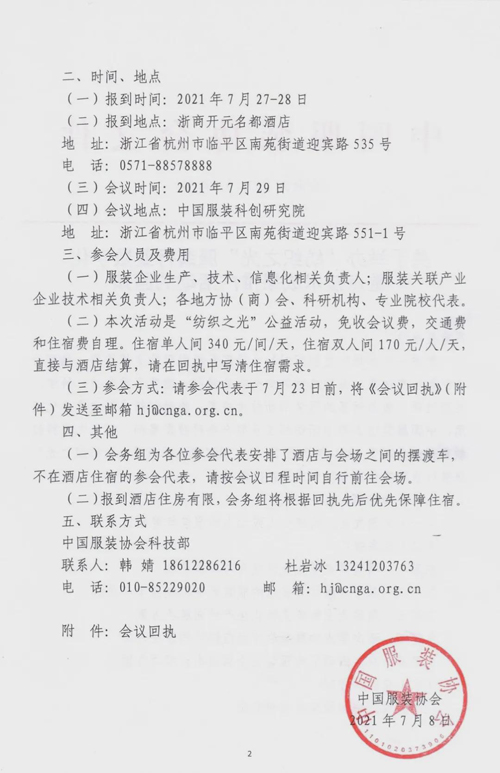 為進一步加強科技創新對行業轉型升級發展的支撐作用,構建行業創新生態體系,系統總結并向全行業推廣、推薦當前先進、科學、實用性強、效益明顯的服裝用新技術成果,推動創新成果的產業化應用,中國服裝協會與中國紡織工業聯合會科技發展部、紡織之光科技教育基金會定于2021年7月29日在浙江省杭州市舉辦“紡織之光”服裝行業數字化重點技術成果推廣活動。